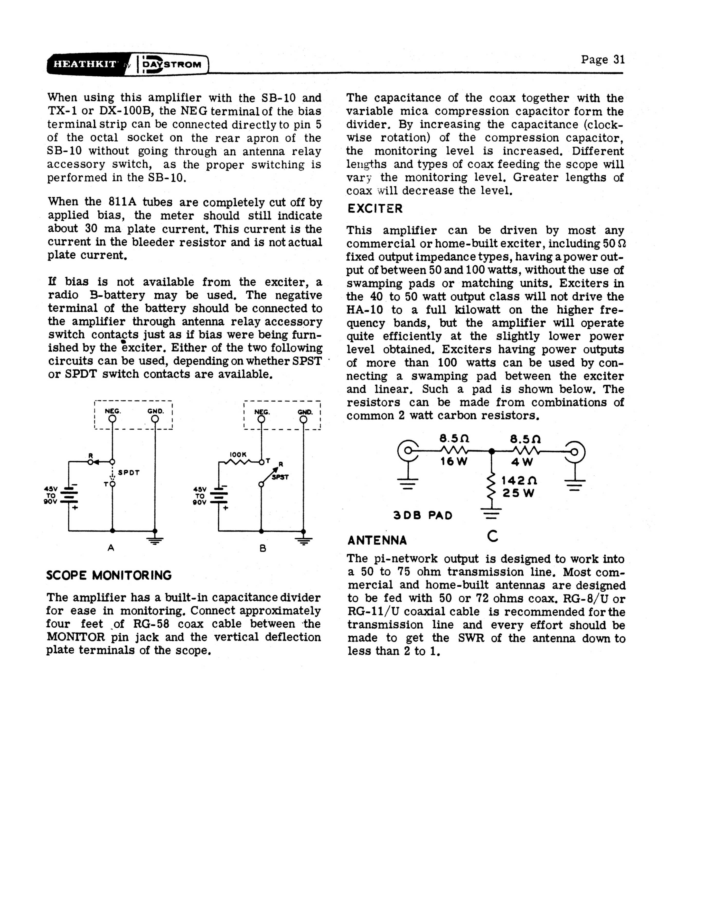 See my discussion on the SB200 for details on the 47 Ohm carbon resistors in the plate parasitic suppressors. If the amp has been used extensively on 10 meters, they may have overheated. DO NOT USE MODERN FILM RESISTORS! They are inductive and the amplifier will oscillate!